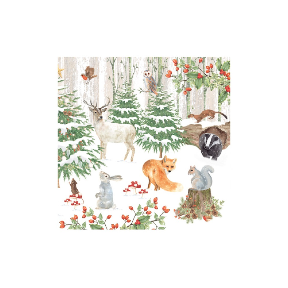 Papírové dekorativní ubrousky 33 x 33 cm 20 ks - Lesní zvěř v zimě