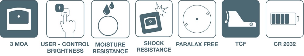 Konstrukce těla je z CNC frézovaného hliníku 6061‑T6, eloxovaného a vodotěsného podle normy IPX7. Kolimátor zvládá vibrace až 1200 G a solný sprej, má mechanické klikání 1 MOA a výměnnou baterii CR2032 bez nutnosti demontáže.