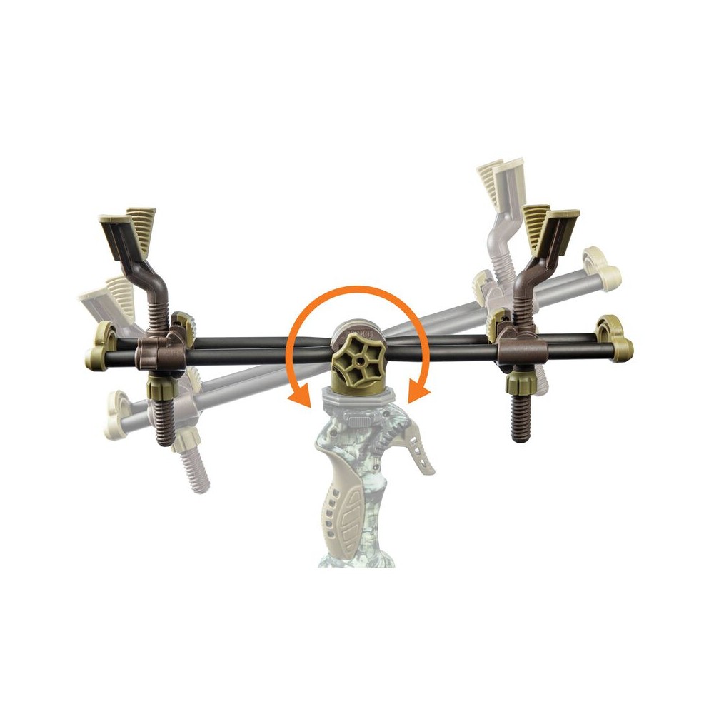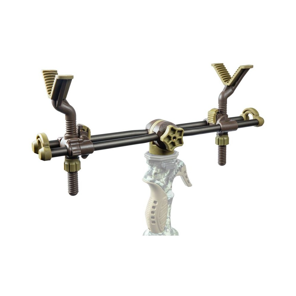 Dvoubodová opora 2-Point Gun Rest na střeleckou hůl Primos se snadno připojí k jakémukoliv stativu teleskopických holí Trigger Stick nebo k holím se 1/4" závitem. Opora je určena pro přesnou střelbu především na větší vzdálenosti.